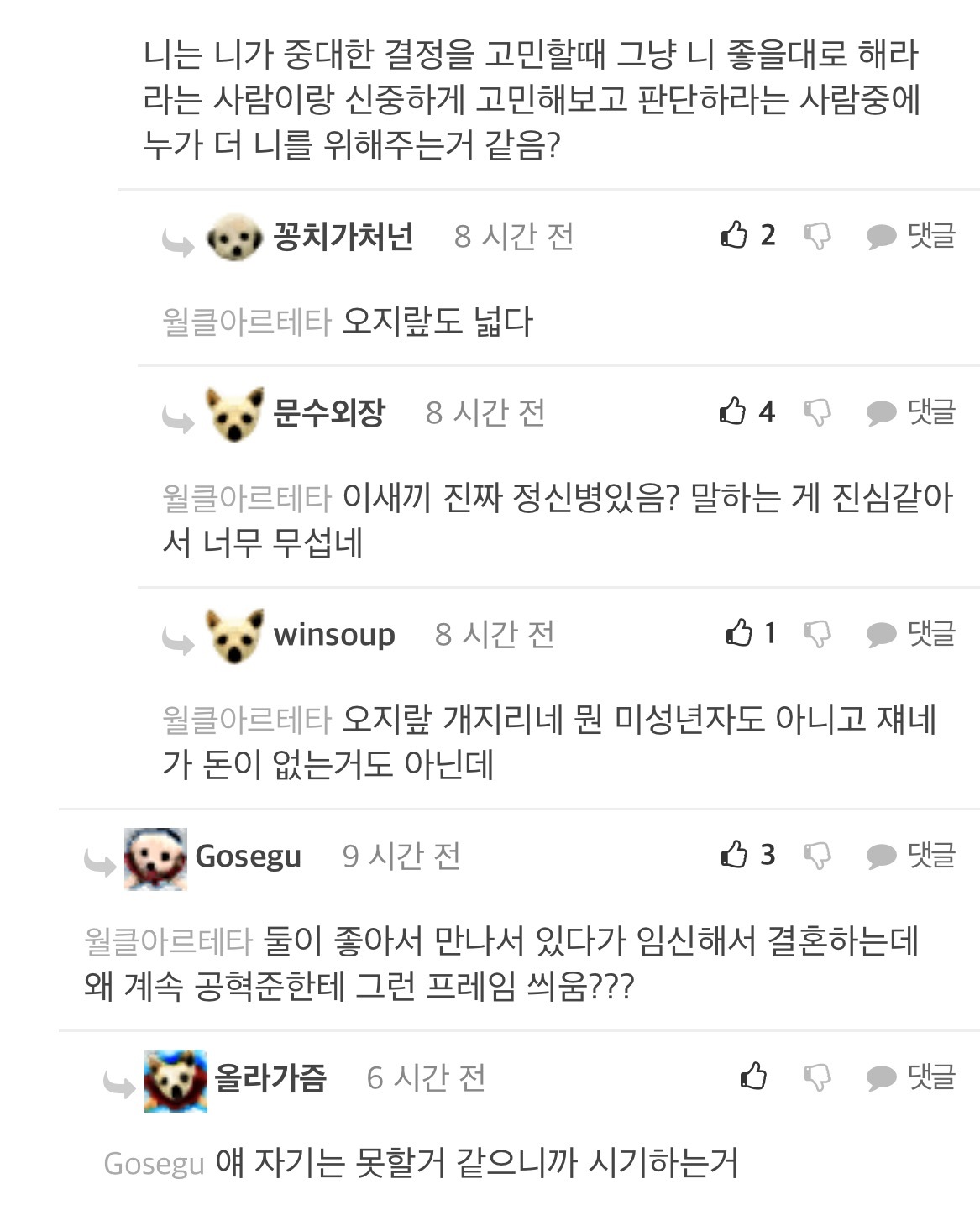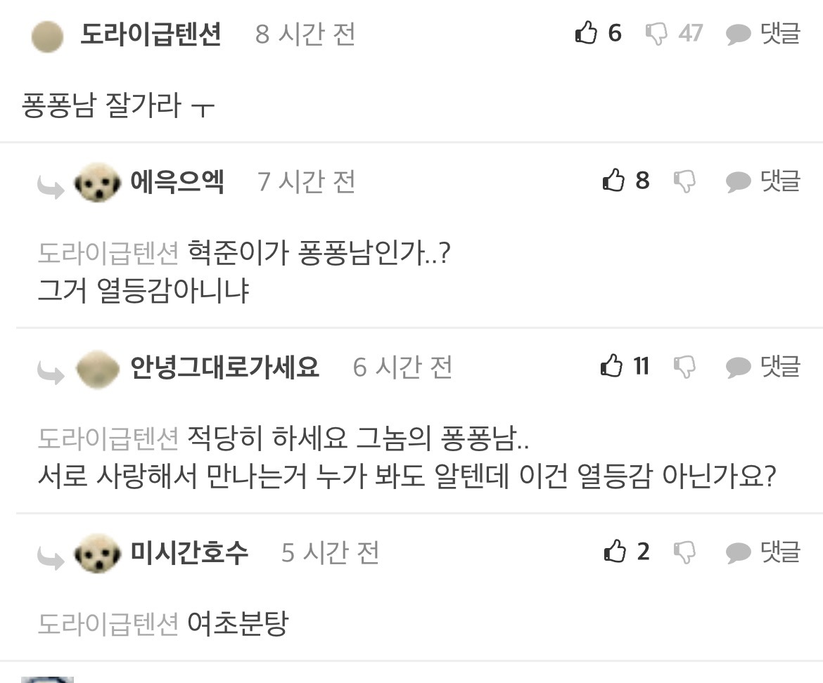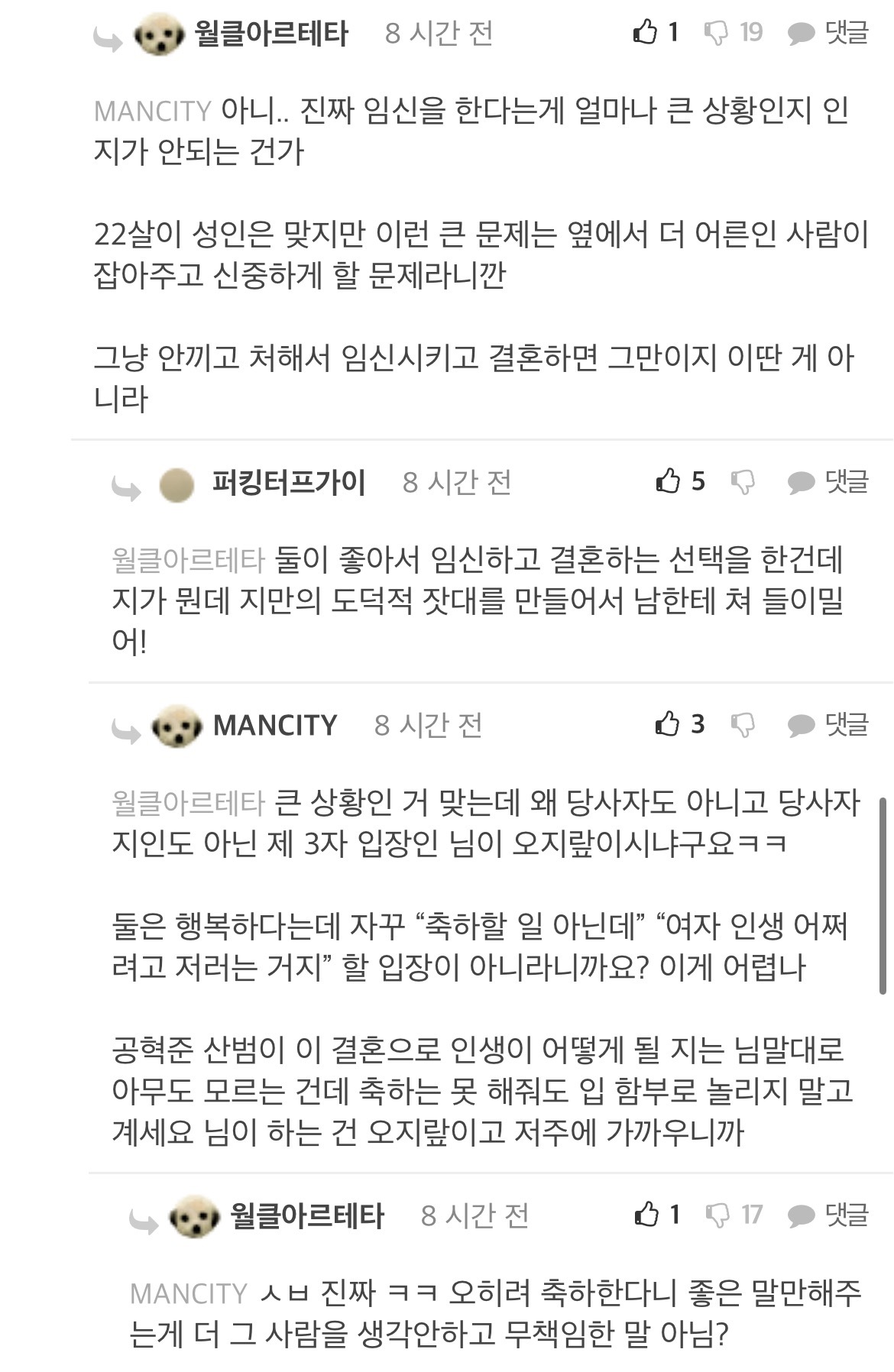 [흥미돋]산범 공혁준 결혼/속도위반 남초 반응 작성자(본인|작성시간22.04.13|조회수35,101 목록 댓글 68 글자크기 작게가 글자크기 크게가 출처 : https://m.fmkorea.com/4519268715악플ㄴㄴ남초 반응 관심 없으면 뒤로가기 다음검색 현재 게시글 추가 기능 열기 북마크 공유하기 신고 센터로 신고 댓글 댓글 68 댓글쓰기 답글쓰기 댓글 리스트 작성자윤석얼 | 작성시간 22.04.14 와ㅋㅋㅋㅋㅋ 인생 개씹ㅎㅌㅊ들만 모아놓은거 같음 답댓글 작성자윤석얼 | 작성시간 22.04.14 공혁준한테 자아의탁하는거 뭐임? 진짜ㅋㅋ 작성자2022년부자될거야 | 작성시간 22.04.14 어떻게든 합리화 하네ㅋㅋㅋㅋ 작성자햄반장 | 작성시간 22.04.15 월클아르테타는 왜 펨코하노 탈출해라 작성자홍만채 | 작성시간 22.09.06 크런키가 뭐지 댓글 전체보기