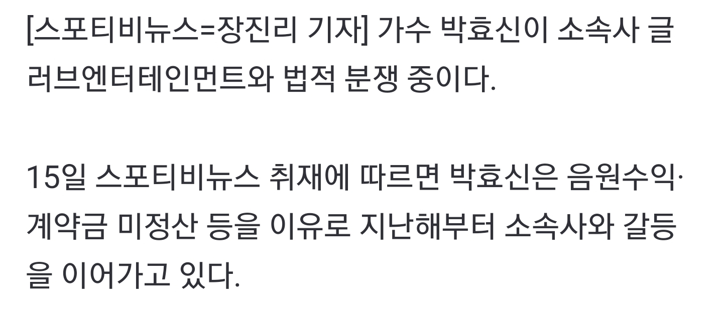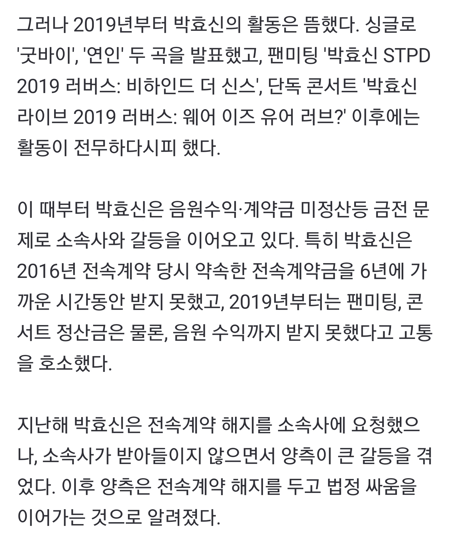 [여시뉴스데스크][단독]박효신, 전속계약금→활동 수익 못 받았다…소속사와 법적 분쟁 작성자초코홈런볼|작성시간22.04.15|조회수6,066 목록 댓글 58 글자크기 작게가 글자크기 크게가 출처 : http://naver.me/5LA8S97w전문 ㅊㅊ 다음검색 현재 게시글 추가 기능 열기 북마크 공유하기 신고 센터로 신고 댓글 댓글 58 댓글쓰기 답글쓰기 댓글 리스트 작성자Like stars | 작성시간 22.04.15 이와중에 박효신 사주 궁금하다 작성자대장금 | 작성시간 22.04.15 또? 라는 말이 절로 나오네 작성자소쌍뺌니갤충꺼져 | 작성시간 22.04.15 예전 소속사 사장은 사기치다 지금 감옥행,, 지금 사장은 프로포폴로 재판중,, 그럼 피해자 아닌가 작성자맨덜리주민 | 작성시간 22.04.15 소속사 미쳤노.. 작성자바라바라바라밤밤 | 작성시간 22.04.15 또...? 댓글 전체보기