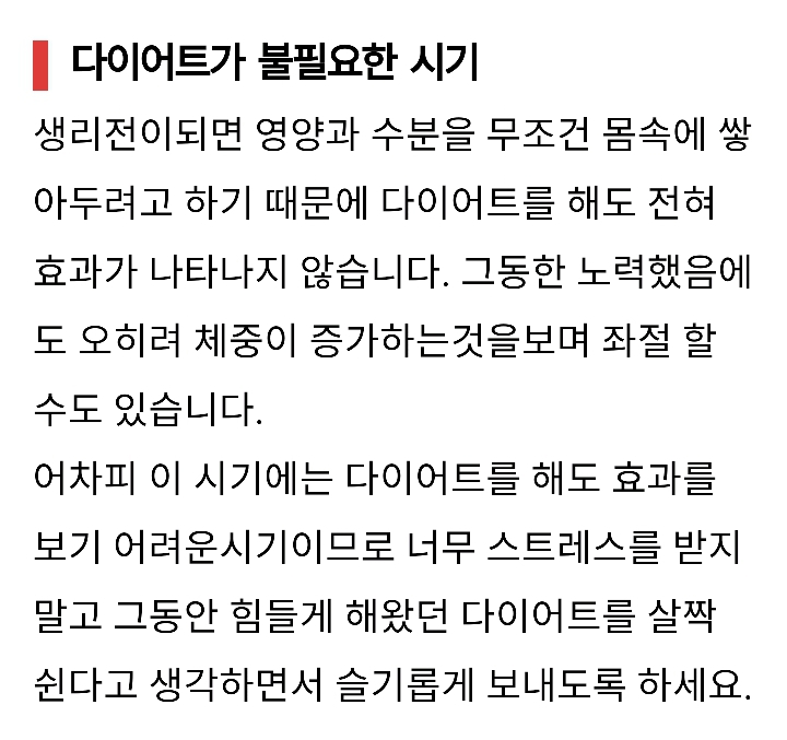 체중 증가했다고 굶거나 무리한 운동 하면 PMS가 심해진대