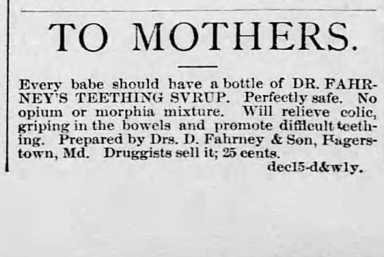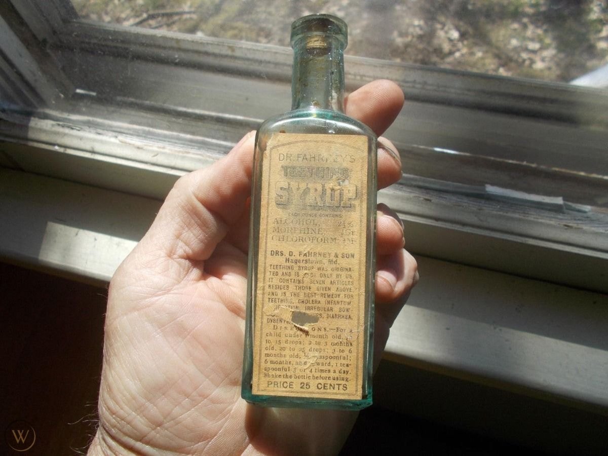 아기들을 위한 약으로 광고되었는데, 성분에는 알코올, 모르핀, 클로로포름이 포함되어 있었음.