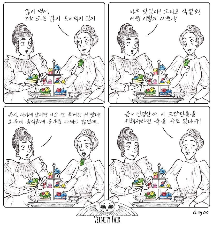 빅토리아 시대 사람들은 이 독성 물질들을 혼합하여 디저트를 위한 아름다운 색을 내는 방법을 공유하기도 했는데,