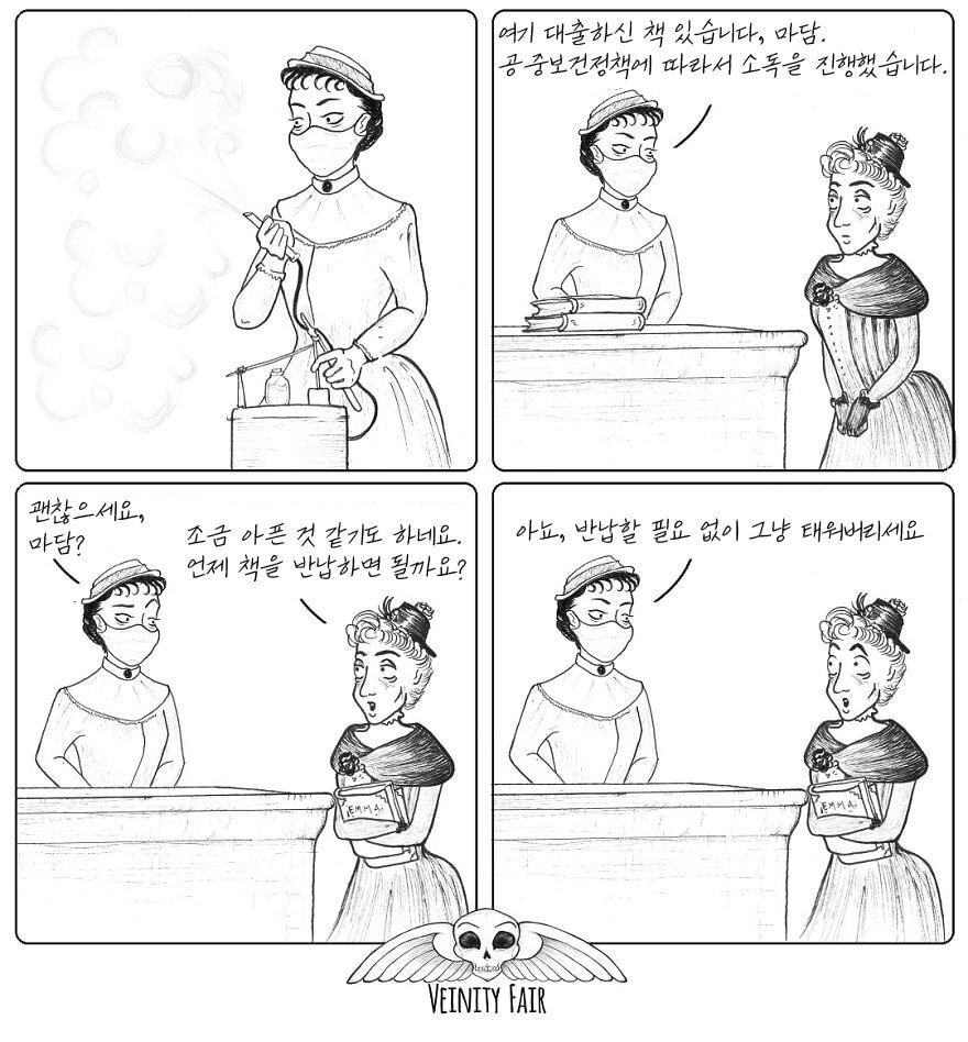 "도서관의 책이 전염병의 원인"이라는 생각을 굉장히 많이 가지고 있었음.