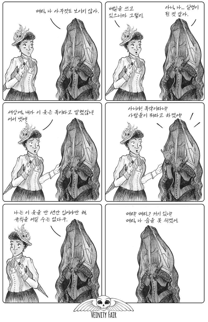 빅토리아 시대에는 장례식에 상복 베일을 착용하는 것이 여성들에게 인기를 끌었음.