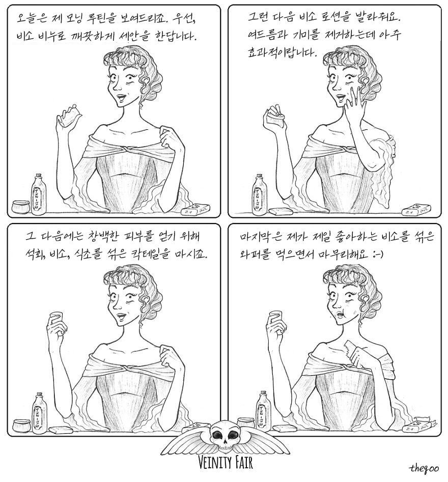 이 외에도 매일 저녁에 올리브 오일로 목욕을 했고,