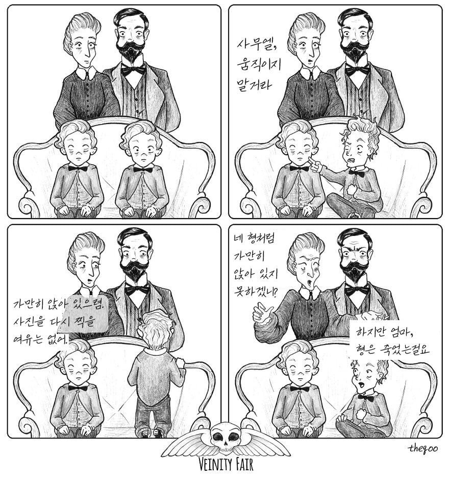 죽은 가족과 살아있는 가족이 함께 사진을 찍어서 추모를 한 것임.