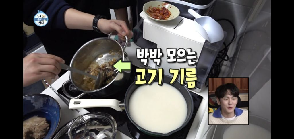 저 기름을 사골국물에 좀 넣... 돼지기름이라 괜찮대여..