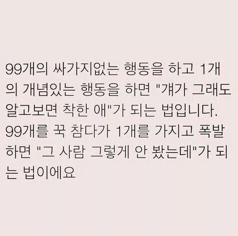 [스크랩] [흥미돋]살면서 느끼는 진리 중 하나 작성자정신차리고뻔뻔하자|작성시간22.05.10|조회수15,696 목록 댓글 6 글자크기 작게가 글자크기 크게가 출처 : https://www.dmitory.com/index.php?mid=issue&page=4&document_srl=72672894# 다음검색 스크랩 원문 : *여성시대* 차분한 20대들의 알흠다운 공간 현재 게시글 추가 기능 열기 북마크 공유하기 신고 센터로 신고 댓글 댓글 6 댓글쓰기 답글쓰기 댓글 리스트 작성자두레쥬스 | 작성시간 22.05.10 싸가지없이 살래.. 작성자SUMIN | 작성시간 22.05.10 이래서 착하게살필요없음 착하다고 이득보는게 정말 하나도없거든 작성자밥밥라바다 | 작성시간 22.05.10 ㅁㅈㅁㅈ 작성자지팩트 | 작성시간 22.05.10 맞아. 이래서 사람은 합리적이지않다는 생각을 하곤했어 작성자봄의 정원 | 작성시간 22.05.10 착하게 말고 예의있게 살고싶음 댓글 전체보기