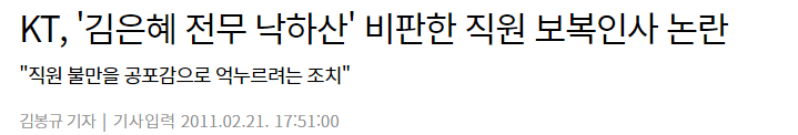 낙하산 비판한 직원 보복인사 논란까지 있었음...