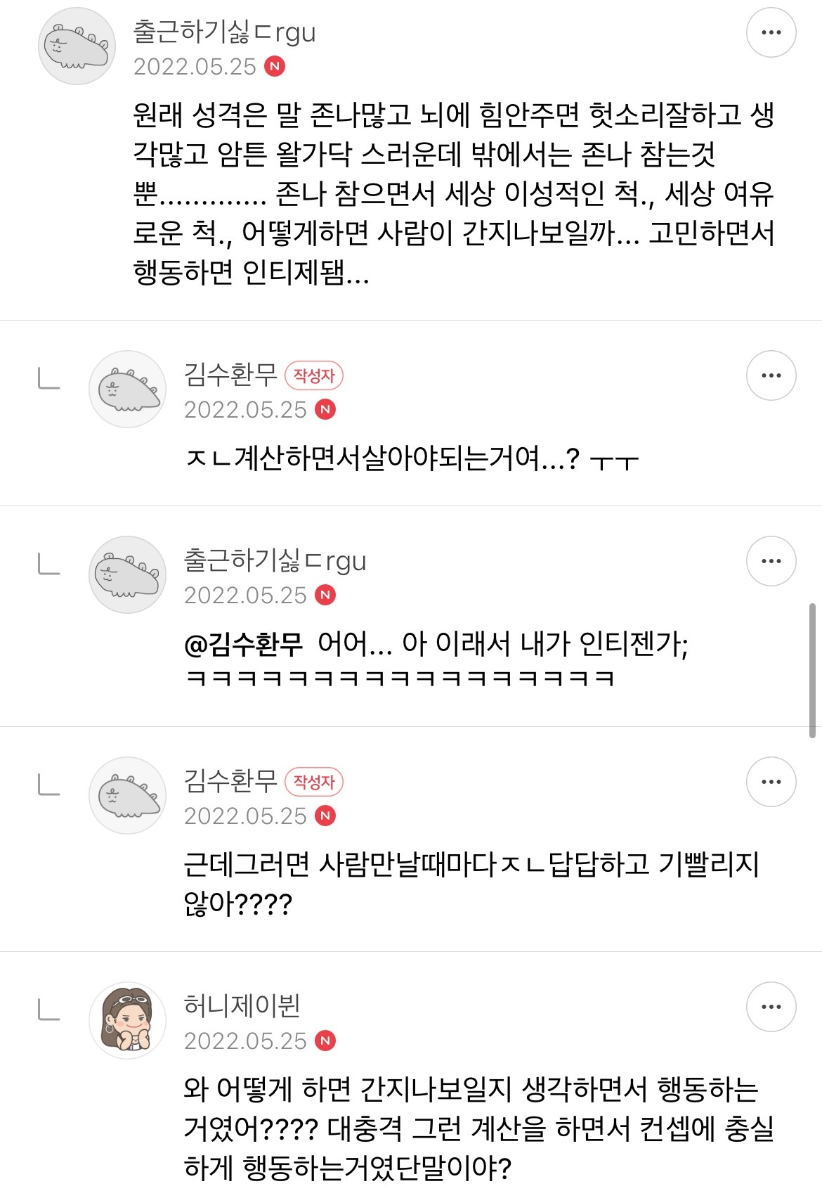 사람 싫어하고 하고싶은 말 꾹 참아야됨