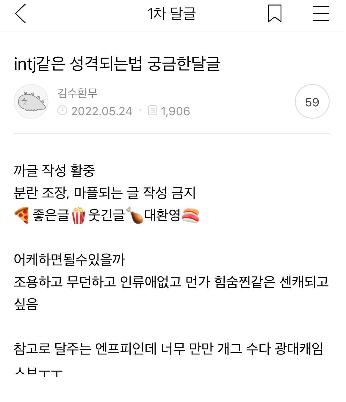 진지한 고민이지만 벌써부터 글에서 엔프피향 솔솔