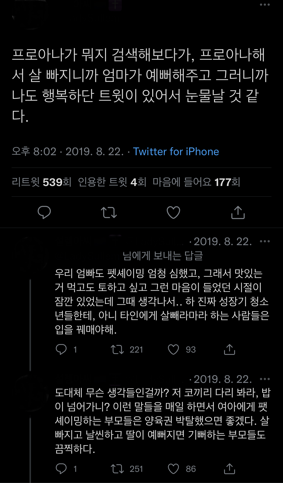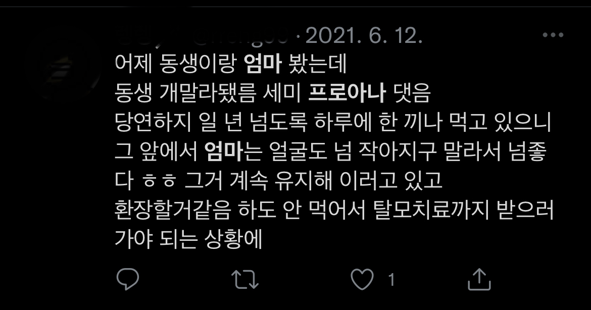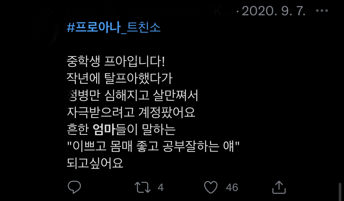 트위터 프로아나 계정들만 봐도.. 엄마때문에 프로아나 되는경우 너무 많음