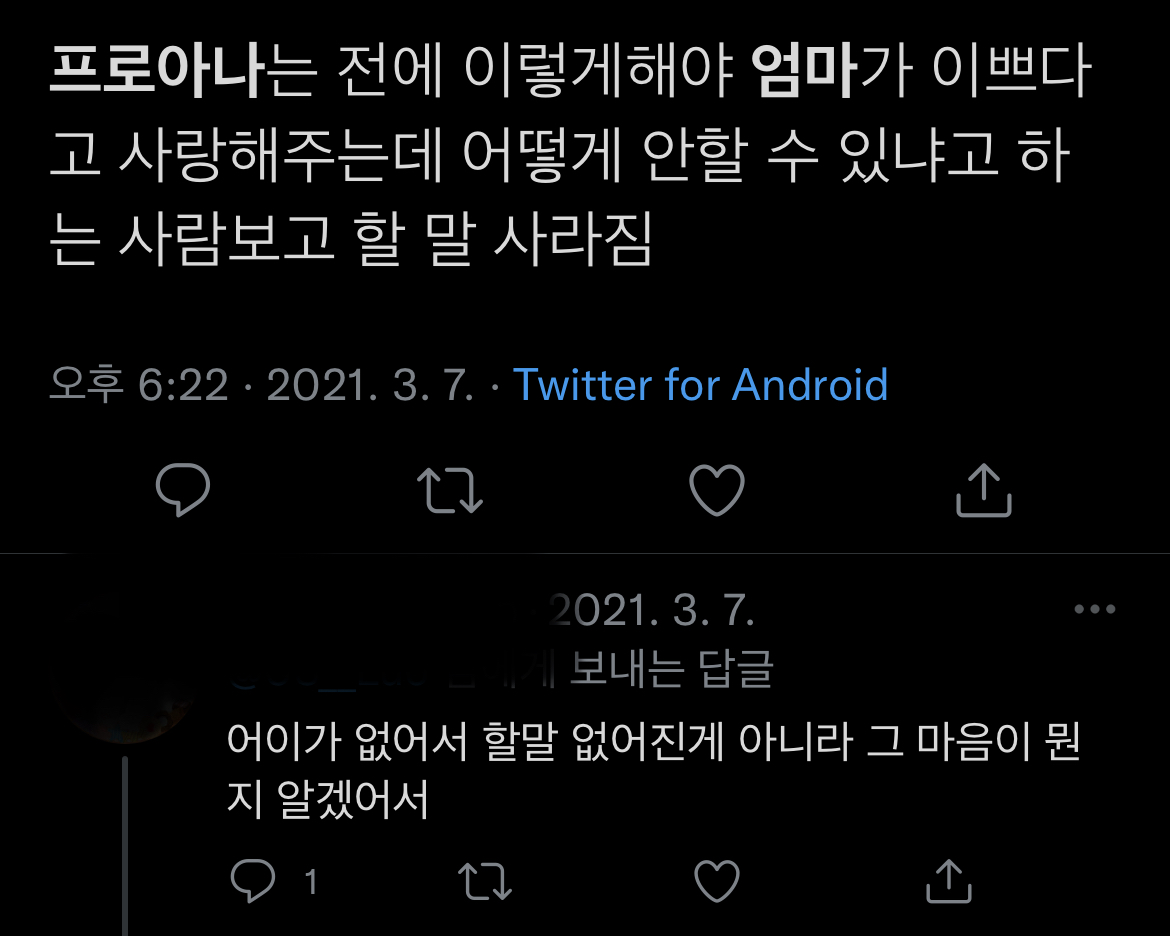 엄마가 좋아해서 행복하다는 글만 있음