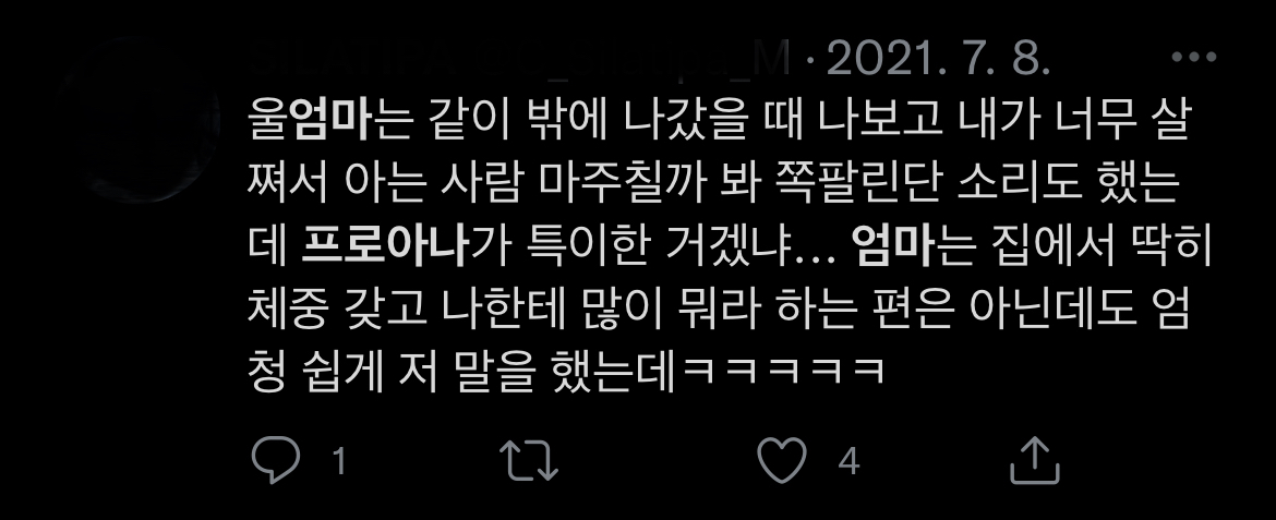 심지어 엄마 가게일 도와주느라 10시간 서서 일해서 다리아픈것도 살쪄서 그렇다고함ㅋㅋ
