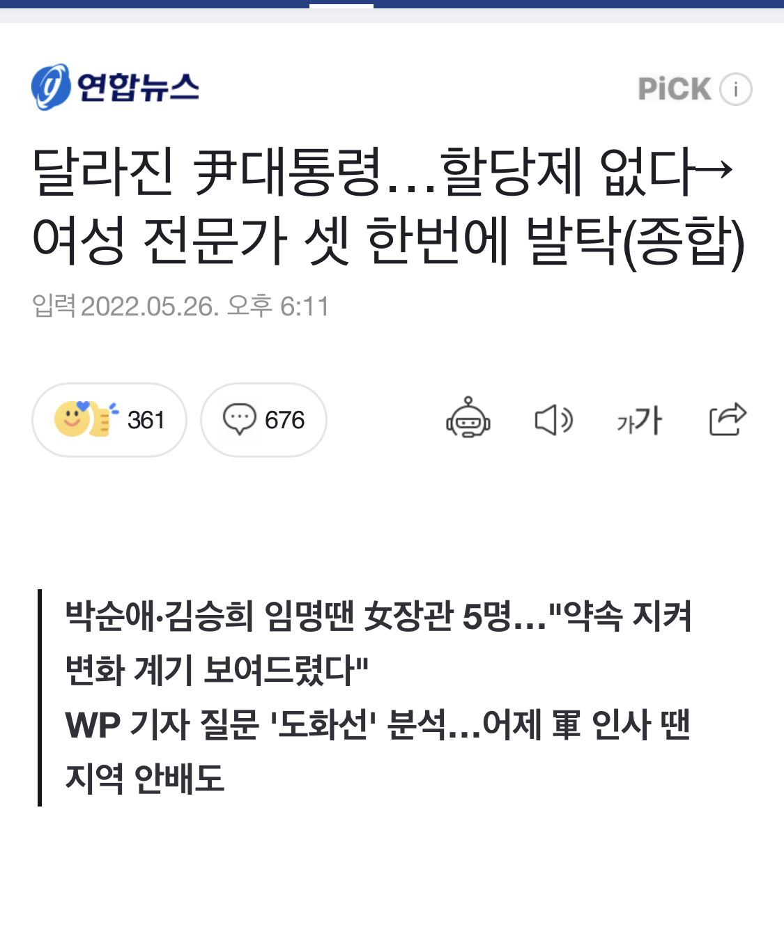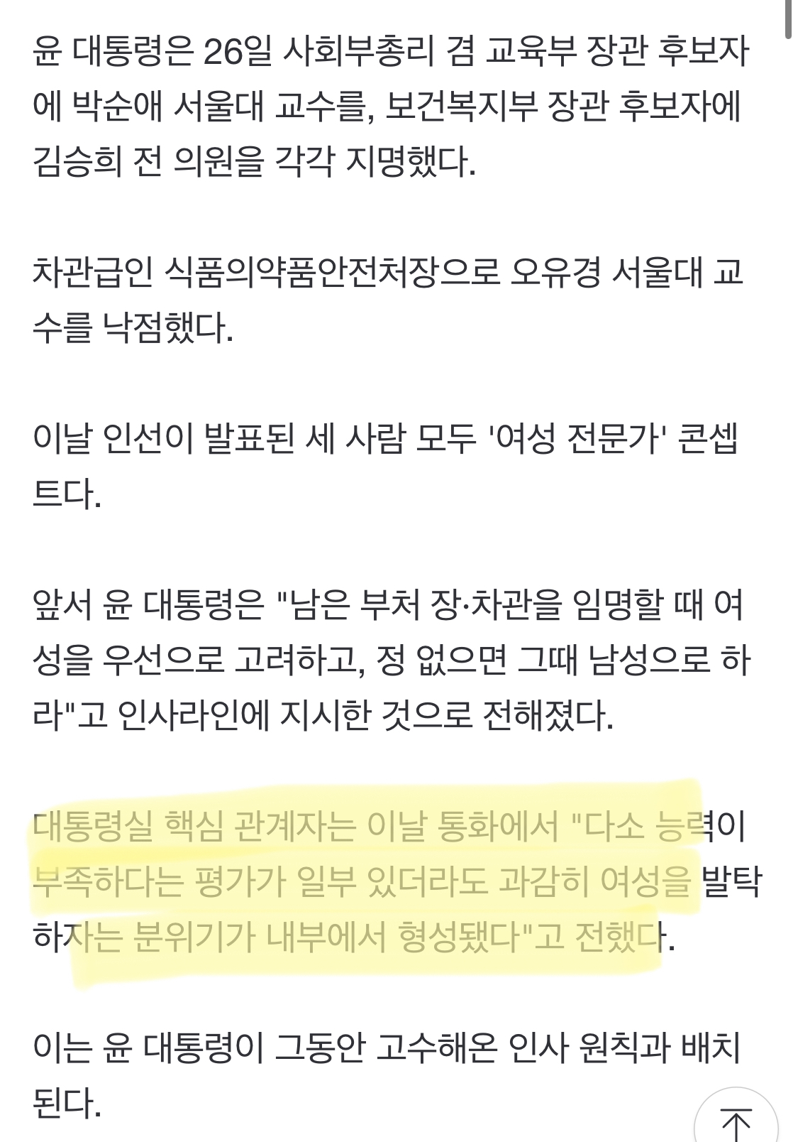 [여시뉴스데스크]달라진 尹대통령…할당제 없다→여성 전문가 셋 한번에 발탁(종합) 작성자로투스누텔라크로스|작성시간22.05.27|조회수2,530 목록 댓글 28 글자크기 작게가 글자크기 크게가 출처 : http://naver.me/I5oxfzER달라진 尹대통령…할당제 없다→여성 전문가 셋 한번에 발탁(종합)박순애·김승희 임명땐 女장관 5명…"약속 지켜 변화 계기 보여드렸다" WP 기자 질문 '도화선' 분석…어제 軍 인사 땐 지역 안배도 (서울=연합뉴스) 한지훈 기자 = 윤석열 대통령의 인사 원칙이 달n.news.naver.com여성인사 발탁과는 별개로 말하는게 여성 능력 후려치는거 같아서 어이없어서 가져옴 다음검색 현재 게시글 추가 기능 열기 북마크 공유하기 신고 센터로 신고 댓글 댓글 28 댓글쓰기 답글쓰기 댓글 리스트 작성자잭로즈 | 작성시간 22.05.27 내부에서 말하는건 귓등으로도 안듣고 그저 미국에서 쪽주니깐 헐레벌떡 여성 셋ㅋㅋㅋㄱ투우명 하네요 시발새꺄 작성자하얀마음백범김구 | 작성시간 22.05.27 끝까지 쳐후려치는거 봐 작성자심호흡혀 | 작성시간 22.05.27 ?? 능력부족이요? 작성자굥산당 죽어라 | 작성시간 22.05.27 능력부족 ㅋ..... 제대로 시대역행하네 작성자푸딩야 | 작성시간 22.05.27 ㅋㅋ야 니나잘해 댓글 전체보기