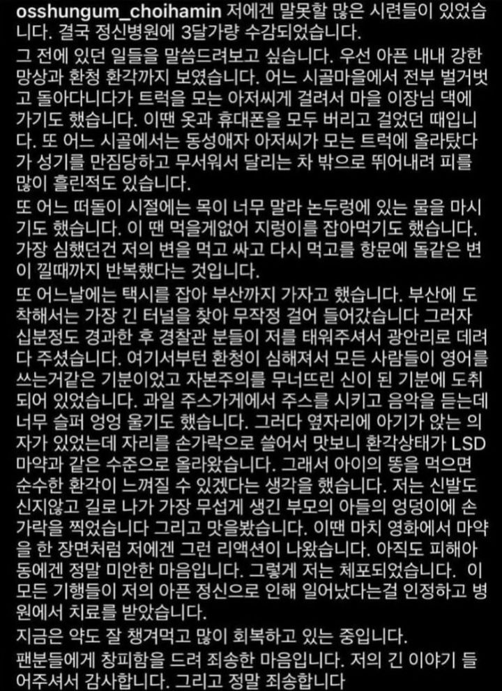 저런내용을 알릴만큼 본인이 치료의지와 반성이 있길바람 -