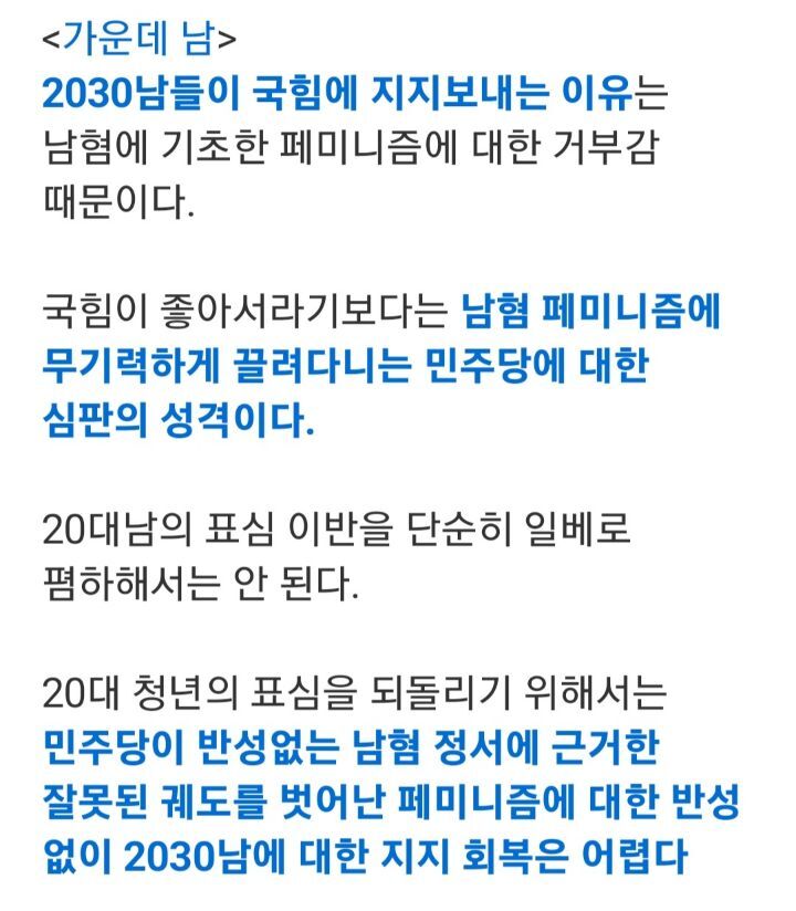 민주당의 페미니즘 전략을 고민해보자는 가운데남