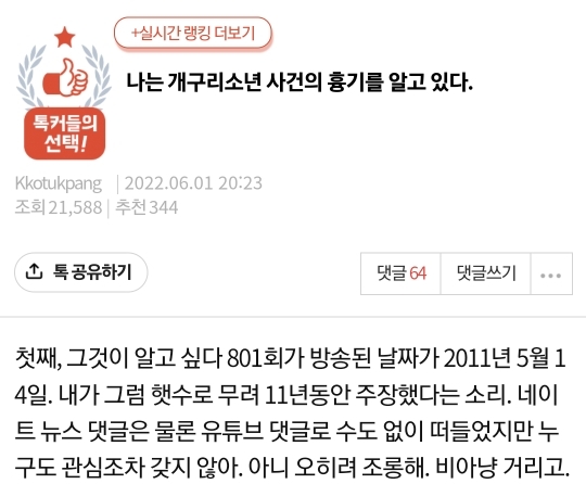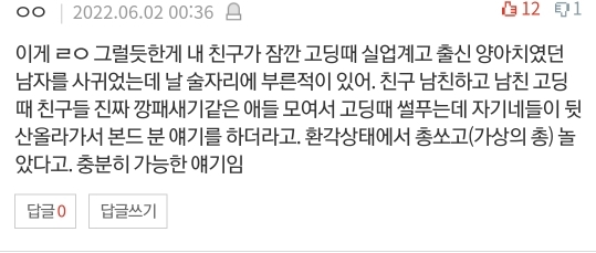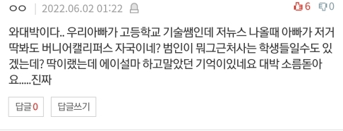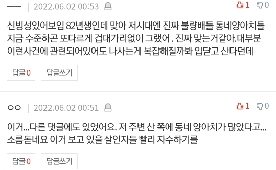 작성자랄리량 작성시간 22.06.04 왜 조사안해!!????? 수사 안하는거 진짜 수상하다. 살인자들 진짜 벌받아야 하는데.