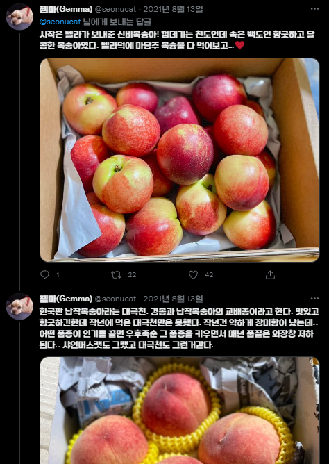 이분의 복숭아 정보는 찐이야.