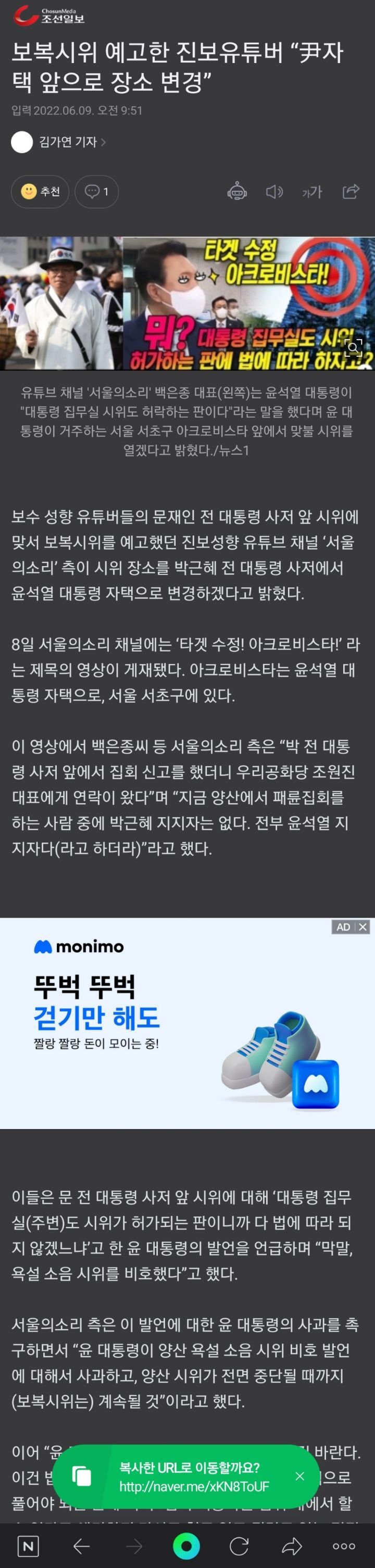 [여시뉴스데스크]보복시위 예고한 진보유튜버 “尹자택 앞으로 장소 변경” 작성자오예에에에칵|작성시간22.06.09|조회수1,486 목록 댓글 18 글자크기 작게가 글자크기 크게가 출처 : http://naver.me/xKN8ToUF보복시위 예고한 진보유튜버 “尹자택 앞으로 장소 변경”보수 성향 유튜버들의 문재인 전 대통령 사저 앞 시위에 맞서 보복시위를 예고했던 진보성향 유튜브 채널 ‘서울의소리’ 측이 시위 장소를 박근혜 전 대통령 사저에서 윤석열 대통령 자택으로n.news.naver.com댓글가자 아무도없어아직 다음검색 현재 게시글 추가 기능 열기 북마크 공유하기 신고 센터로 신고 댓글 댓글 18 댓글쓰기 답글쓰기 댓글 리스트 작성자재명시대 | 작성시간 22.06.09 응원합니다 작성자꿈은업고요놀고십습니다 | 작성시간 22.06.09 틀딱들 풀발해서 난리났다 ㅋㅋ 작성자슬픔은 간이역에 코스모스 | 작성시간 22.06.09 다치디 마세여ㅠㅠㅠ걱정돼 작성자애덤 | 작성시간 22.06.09 완 작성자후아유늬귀야 | 작성시간 22.06.09 걱정되는데 ㅠㅠㅠ 응원하고싶어 댓글 전체보기