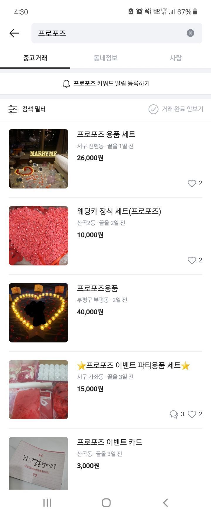 [흥미돋]전국이 ㅈㄹ난 당근마켓 가성비 프로포즈 근황 작성자나는시골쥐|작성시간22.06.09|조회수8,998 목록 댓글 20 글자크기 작게가 글자크기 크게가 출처 : 여성시대 (나는시골쥐)당근마켓에서 프로포즈를 검색해 달라고 하자 달린 수많은 캡쳐들..😇전국이 지랄남 😇 다음검색 현재 게시글 추가 기능 열기 북마크 공유하기 신고 센터로 신고 댓글 댓글 20 댓글쓰기 답글쓰기 댓글 리스트 작성자목넘이 마을의 개 | 작성시간 22.06.09 저렇겐 안 살아야지 작성자고양이는 너무 귀여워! | 작성시간 22.06.09 2개얼 간격으로 두번 팔린것도봄...ㅎ... 두번째사람이 첫번째사람꺼 고대로 갖다썼더라고 .. 작성자비비빅비비 | 작성시간 22.06.09 어쩜이렇게 미적감각 센스 정성 다 재기할 수 있지... 작성자aaaz | 작성시간 22.06.09 한녀살려 작성자@보영 | 작성시간 22.06.09 아니 반지는 왜 팔아? 댓글 전체보기