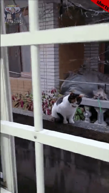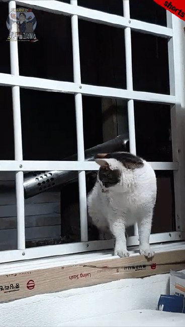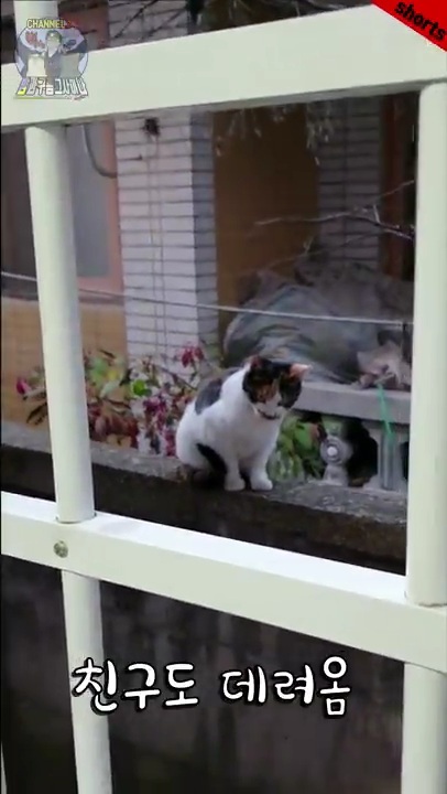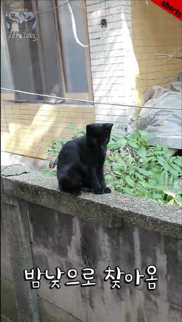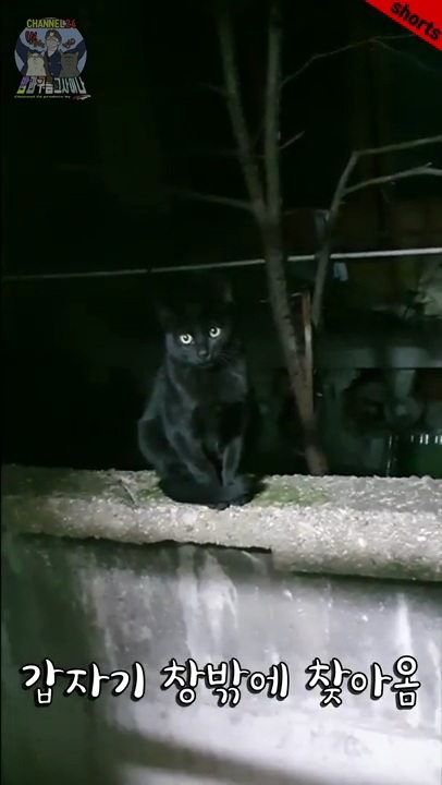 갑자기 어느날 예비 집사 방창문 쪽 담벼락 위로 나타남.