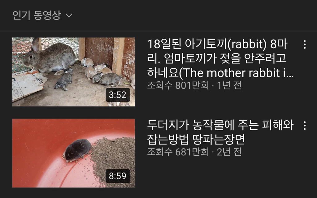 추가로 두더지 영상 조회수 토끼한테 밀린지 꽤됨