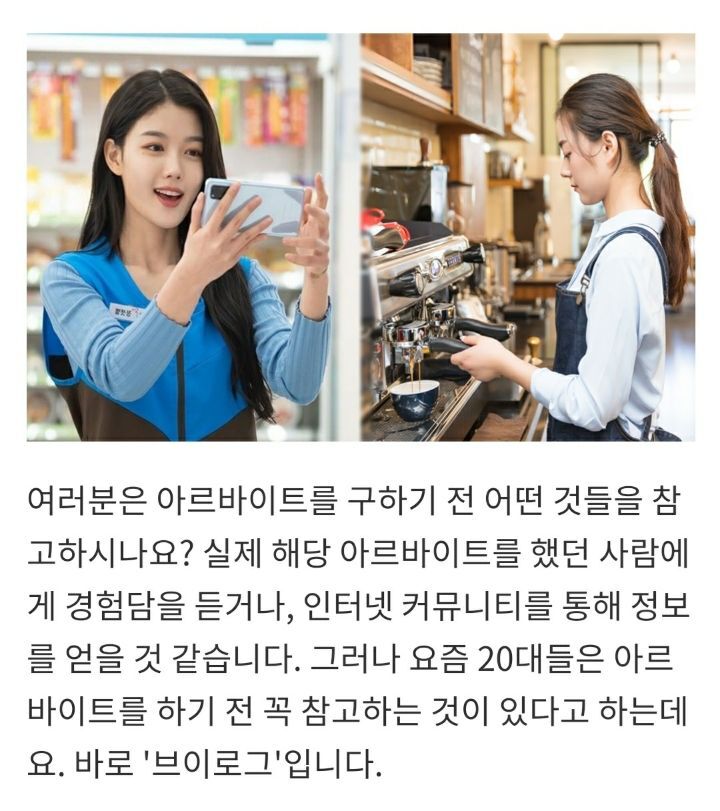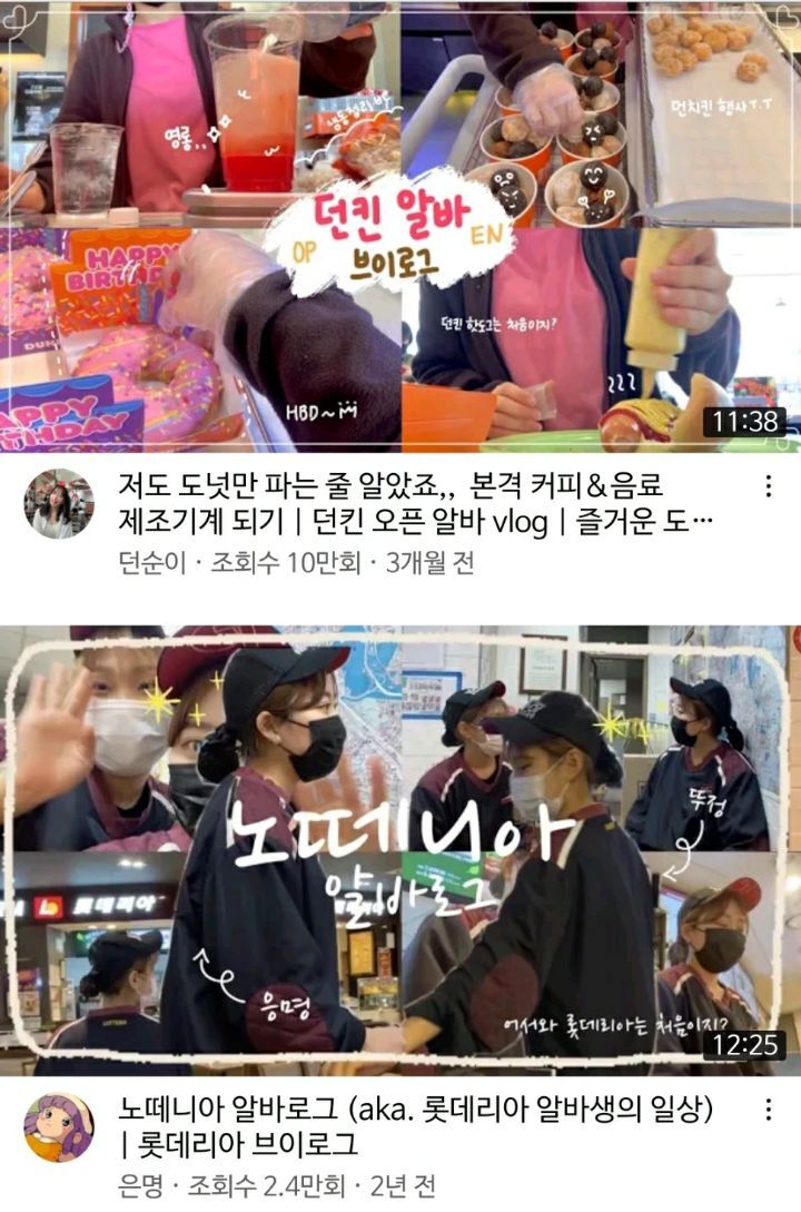 알바 브이로그 보면서 미리 포스기나 커피머신 사용법, 해야하는 일이나 멘트 메뉴 이런 거 미리 공부해서 가는 게 거의 기본처럼 됐다고 함