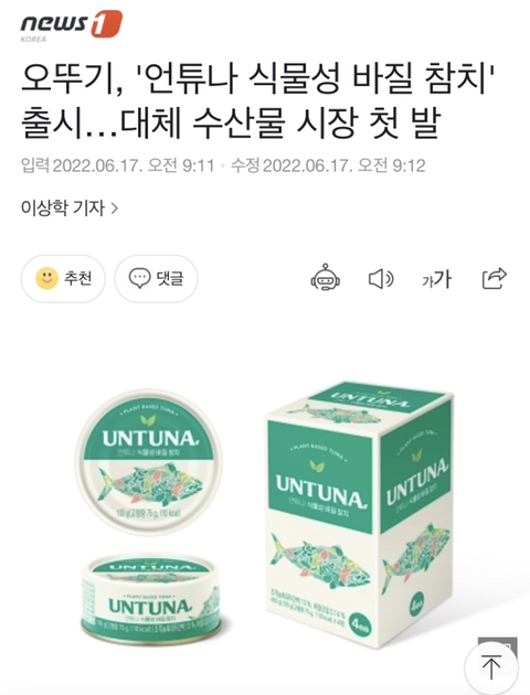 [여시뉴스데스크]오뚜기, '언튜나 식물성 바질 참치' 출시…대체 수산물 시장 첫 발 작성자MoMAA|작성시간22.06.17|조회수6,401 목록 댓글 20 글자크기 작게가 글자크기 크게가 출처 : https://n.news.naver.com/article/421/0006163232?sid=101 다음검색 현재 게시글 추가 기능 열기 북마크 공유하기 신고 센터로 신고 댓글 댓글 20 댓글쓰기 답글쓰기 댓글 리스트 작성자더더미미 | 작성시간 22.06.17 와 대박!!!! 먹어보고 싶어 작성자우앙청심환 | 작성시간 22.06.17 헐 궁금하다 !! 작성자정신체리라 | 작성시간 22.06.17 오 궁금하다 출시되면 먹어봐야지 작성자VEGAN | 작성시간 22.06.17 우아아아 궁금하다 작성자진태현 | 작성시간 22.06.17 와 좋다 댓글 전체보기