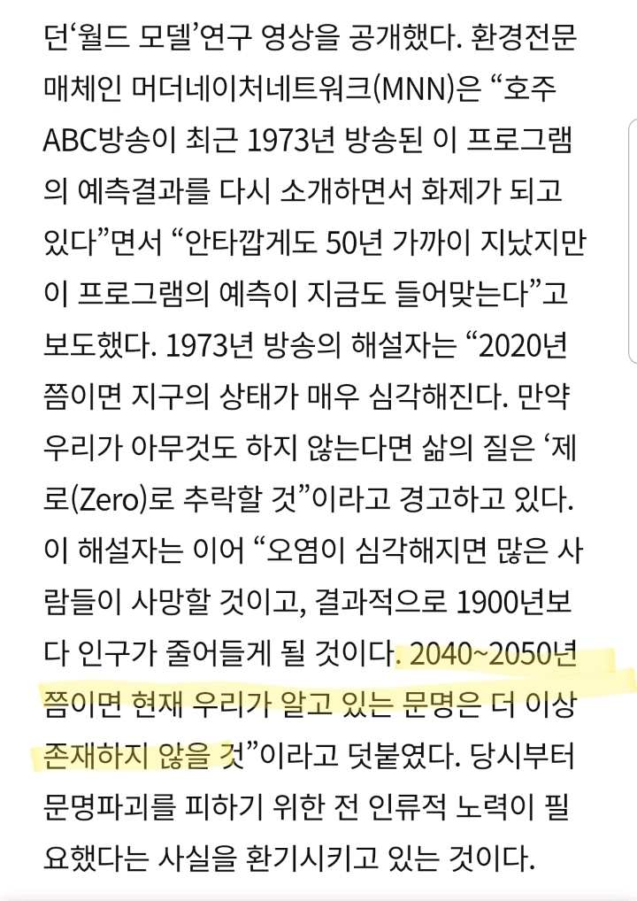 = 우리가 지구 종말을 경험하게 될 1세대라는 이야기