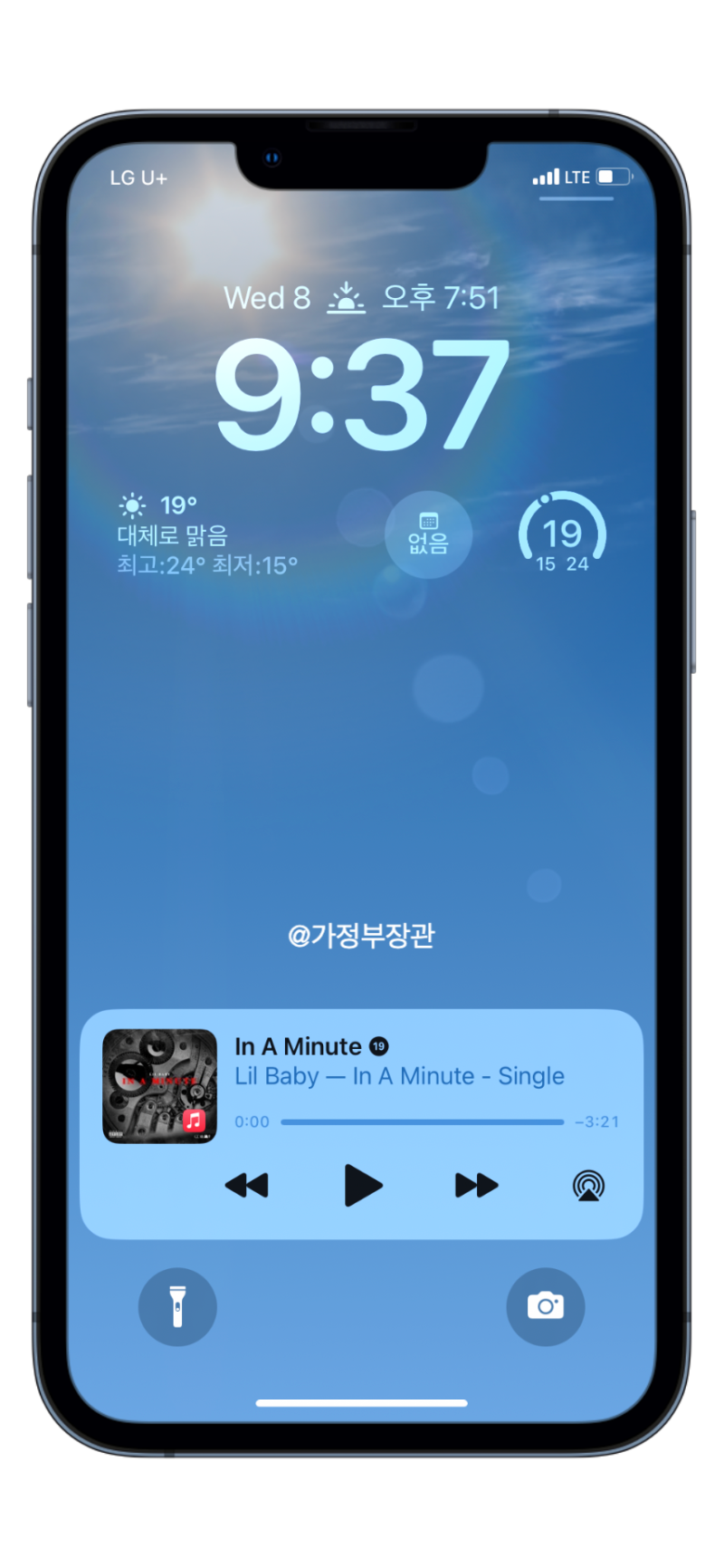 재미있는 화면 스타일로 날씨가 추가되었습니다. 이 잠금화면은 현재 기상상태에 따라 잠금화면이 변화하는 것을 볼 수 있습니다. 날씨앱의 배경화면을 잠금화면으로 옮긴 것 같습니다.