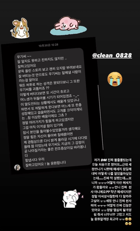 우기 잘하고있어 앞으로도 잘할 거야 화이팅! -