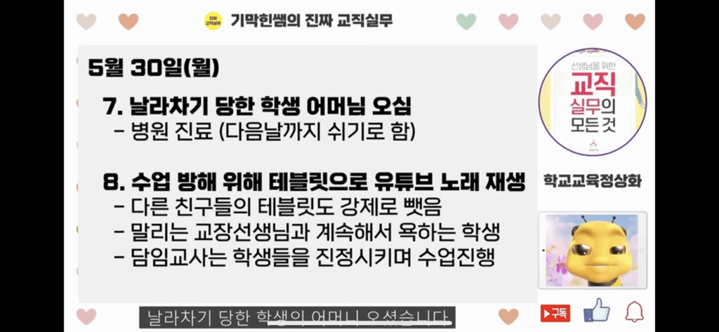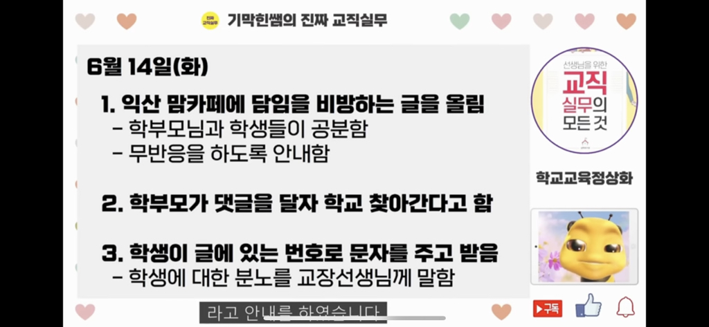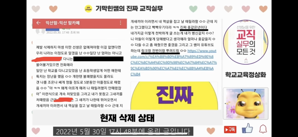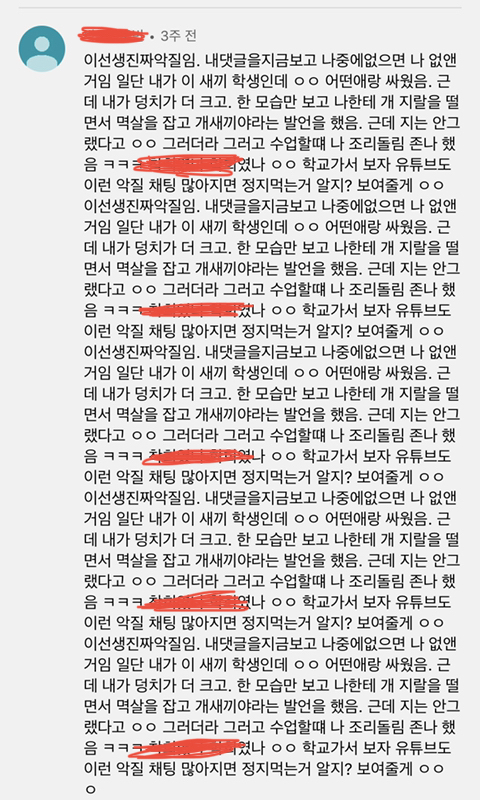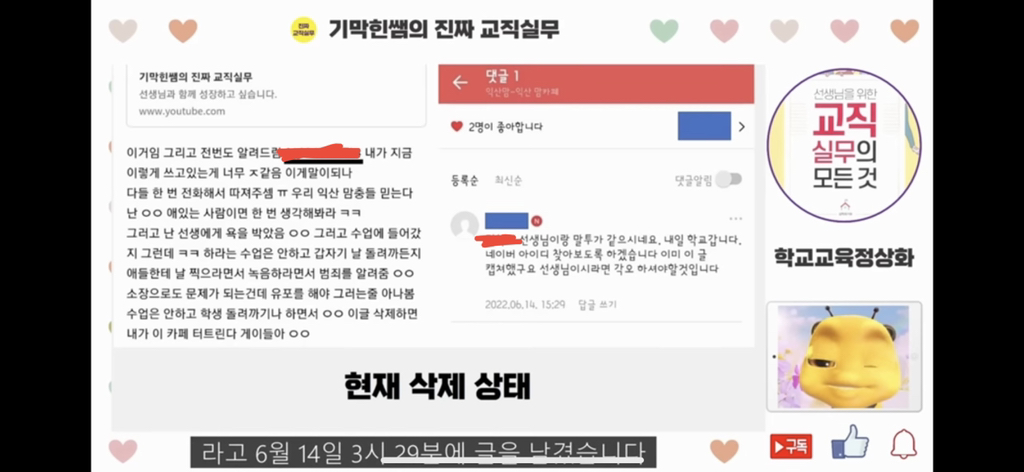 미방(이 학생이 교사 유튜브에 쓴 댓글)