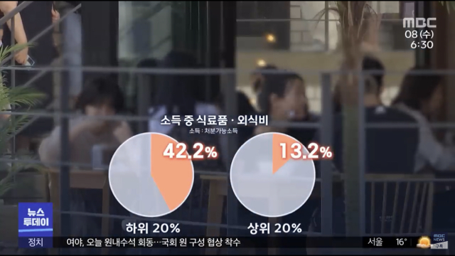 저소득층은 월급의 절반이 식비가 되버림
