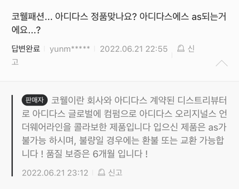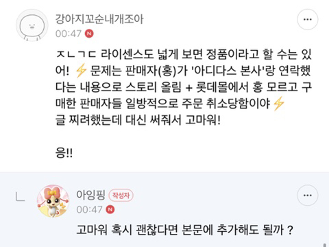 아디다스 "정품"이 아니었음