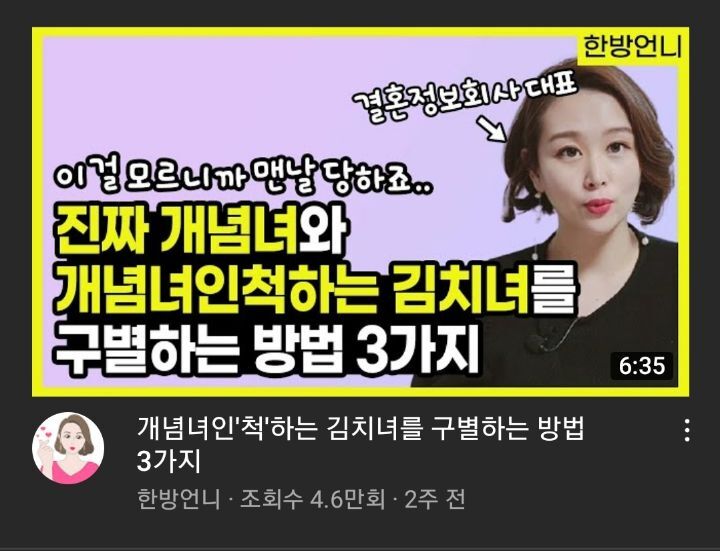 작성자왼손으로 그린 별 하나 작성시간 22.06.23 쇼츠에 많이 뜨더라;;맨날 기겁하면서 넘김ㅠㅠ근데 함 봐야겠다 김치녀 가보자고~~~!!