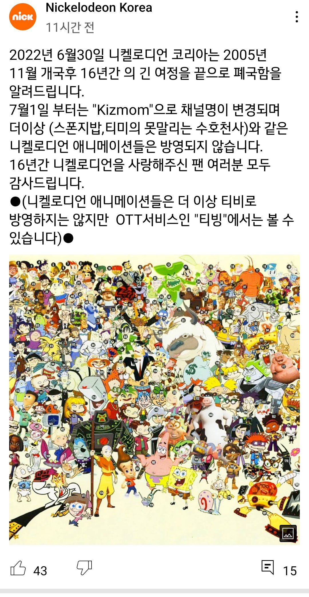 [흥미돋]니켈로디언 코리아 폐국 작성자국은어딨냐|작성시간22.06.28|조회수13,596 목록 댓글 34 글자크기 작게가 글자크기 크게가 출처 : https://youtu.be/QAmQI7qBoo8https://youtu.be/QAmQI7qBoo8ㅠㅠㅠㅠㅠㅠㅠ 다음검색 현재 게시글 추가 기능 열기 북마크 공유하기 신고 센터로 신고 댓글 댓글 34 댓글쓰기 답글쓰기 댓글 리스트 작성자그저한숨만 | 작성시간 22.06.28 헐 왜ㅠㅠㅠㅠㅠㅠ 스펀지밥 ㅠㅠㅠㅠㅠ 작성자가나다람마밥 | 작성시간 22.06.28 헣 ㅜㅜㅜ 작성자닉네임293847 | 작성시간 22.06.29 아만다쇼ㅠ 작성자알레스카 김상죵 | 작성시간 22.06.29 할 안돼 작성자도깨비불너를놀려부 | 작성시간 22.06.29 헐 ㅠㅠㅠ나 니켈로디언맴날 보면서 혼자방에서 놀았은데 ㅠㅠㅠㅠㅠㅠㅠ슬프다 댓글 전체보기