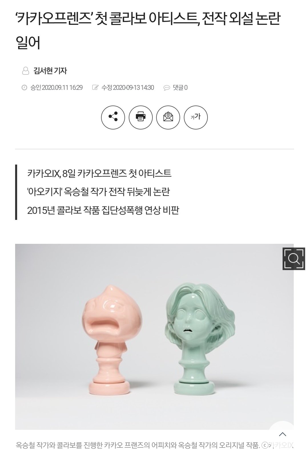 [여시뉴스데스크]‘카카오프렌즈’ 첫 콜라보 아티스트, 전작 외설 논란 일어 작성자도즈오프|작성시간22.07.04|조회수8,729 목록 댓글 15 글자크기 작게가 글자크기 크게가 출처 : 여성시대 도즈오프https://www.womennews.co.kr/news/articleView.html?idxno=202284‘카카오프렌즈’ 첫 콜라보 아티스트, 전작 외설 논란 일어 - 여성신문카카오IX가 카카오프렌즈와 신진 아티스트 옥승철 작과와 콜라보를 한다는 소식이 전해지고 논란이 일고 있다. 일본 애니메이션에서 모티브를 가져오는 옥승철 작가의 작품 중 패션브랜드 리타www.womennews.co.kr리타 에서 아오키지 글을 리포스트 했나봄저 그림이 탄생한 배경 다음검색 현재 게시글 추가 기능 열기 북마크 공유하기 신고 센터로 신고 댓글 댓글 15 댓글쓰기 답글쓰기 댓글 리스트 작성자뽀뽀리아리요 | 작성시간 22.07.04 진짜 역겹다 작성자고양이가세상을구한다. | 작성시간 22.07.04 햄깅이는 메갈이니 뭐니 그러면서 바로 팽당하지않음?ㅎ 근데 저런 집단성교그림 그린사람을 콜라보로 쓴다라...ㅎ 작성자흑임자여시 | 작성시간 22.07.04 아니 나랑 같은 영화 본거 맞음?????도대체 어떻게 저딴 생각을 하지 작성자사회인게임클러뷰 | 작성시간 22.07.04 실력도.. 작성자강동원참치참치 | 작성시간 22.07.04 진짜 어처구니가없다 댓글 전체보기