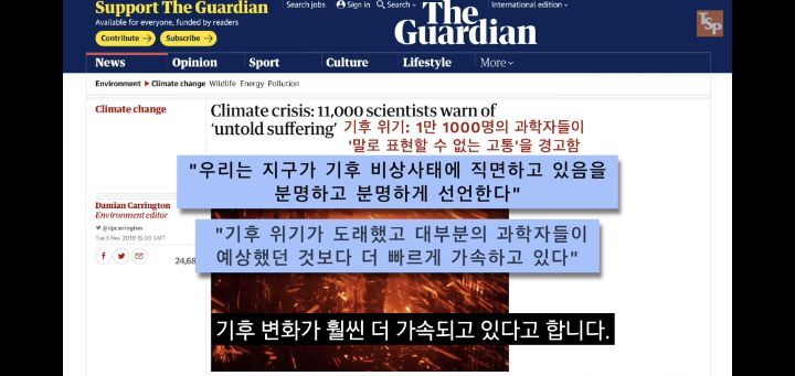 (과학자들이 이건 전 국민의 팀프로젝트라고 일부가 해결할수 없다함. 정부와 기업은 국민이 나서서 움직이게 해야해)
