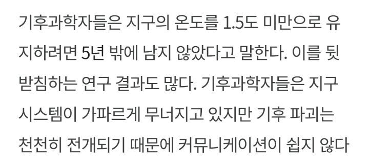 우리에게 막을수있는 남은 시간 5년..이것도 최대 5년 빠르면3년