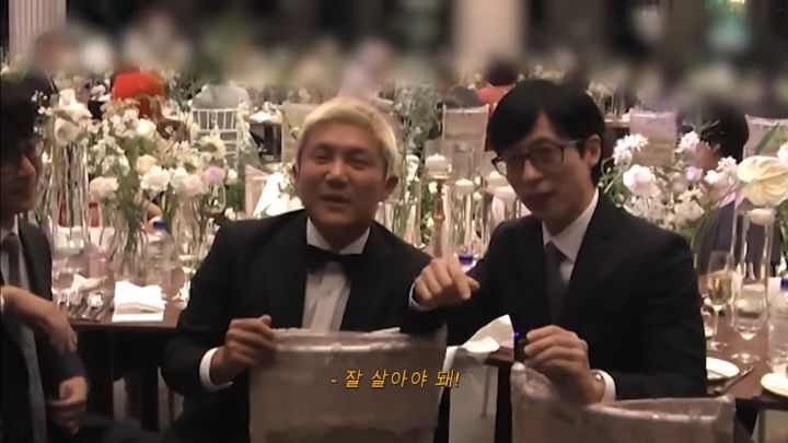 찐친들만 초대한 결혼식에 참석해서 자리를 끝까지 빛내주고 축가 야무지게 즐기고 영상편지까지 남긴 ㅋㅋㅋ유재석 (조세호)