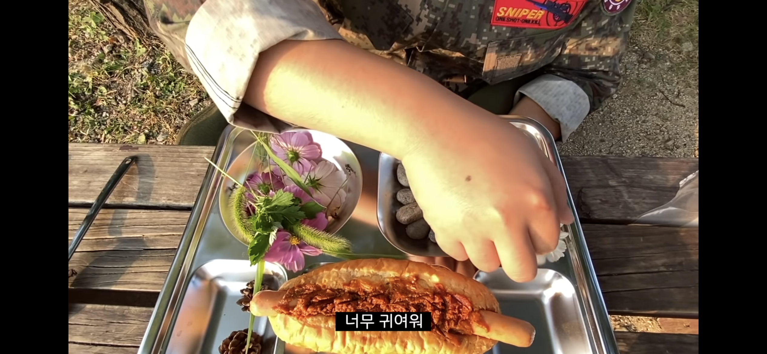 식판에 돌멩이랑 꽃이랑 풀 놓고 너무귀엽다고함 > 맘에듦