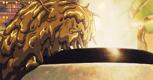 미야자키가 항상 관심을 가졌던 자연과 환경에 관해서, 감독은 이전과 다르게 직접적으로 이를 언급하거나 관객들의 인식전환을 강요하지 않습니다. 처음 이런 인식이 화면에 나온 장면은 이름 있는 강신이 오물을 뒤집어 쓰고 왔던 장면입니다.