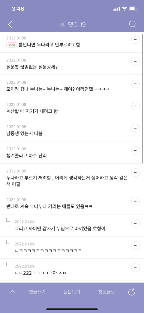 작성자몽글몽글해 작성시간 22.07.17 두가지 케이스난 있었는데 절대 누나라고 안하고 어른스러운척하거나(연하남한테 친누나있으면 백퍼 이 케이스) 반대로 귀여움 어필하고 누나누나거림..