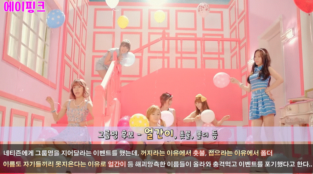 작성자느갈배돌멩이ㅅ1발럼 작성시간 22.07.22 에이핑크 저때 그룹명공모한거 기억남 저기나온건 양반일 정도로 더럽고 그지같은거 많았음