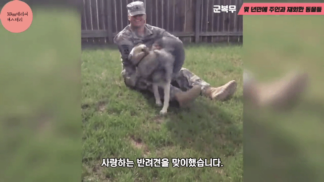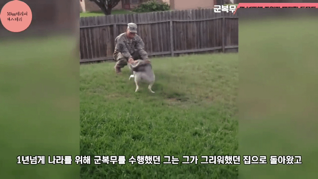 군복무로 1년동안 집비원던 가족 알아보고 좋아하는