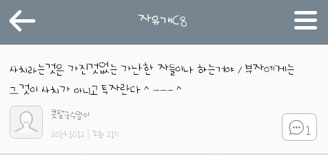 1. 평화로운 자게에 내방 거실이라는 단어를 쓰며