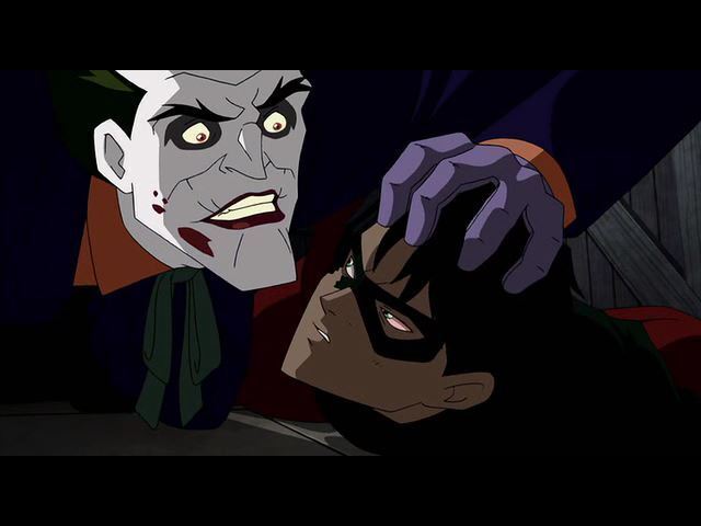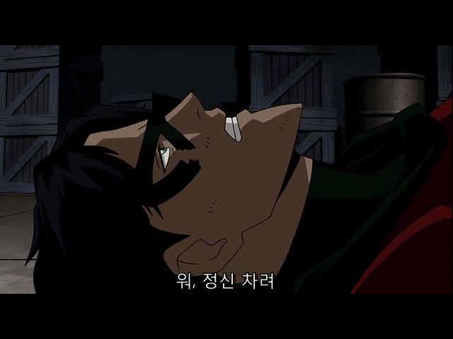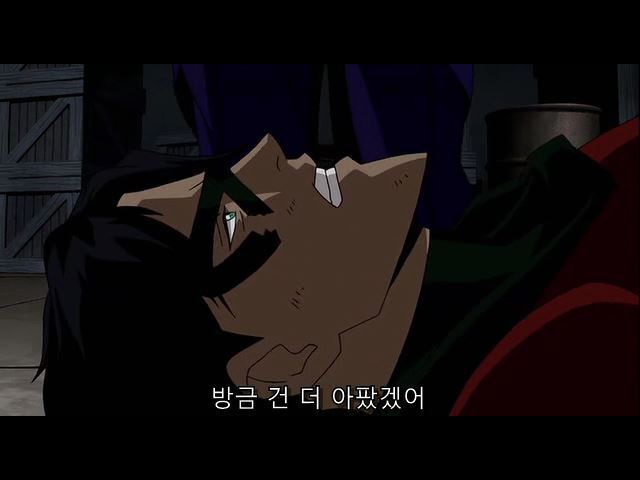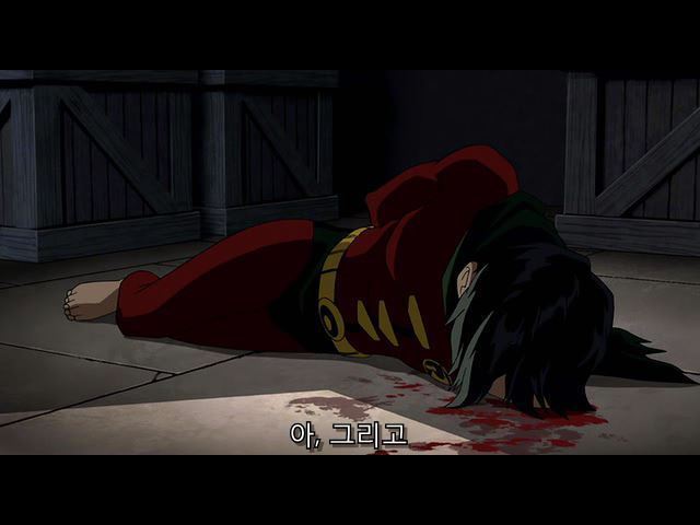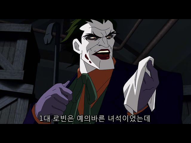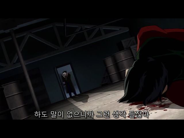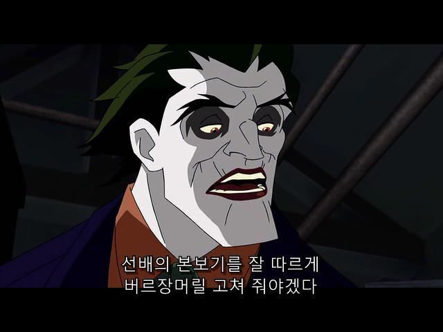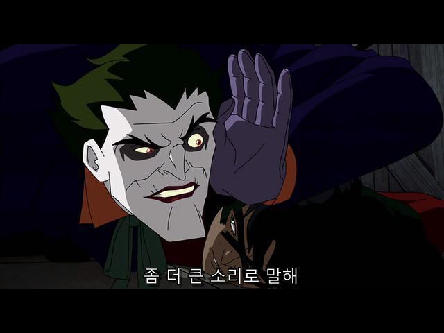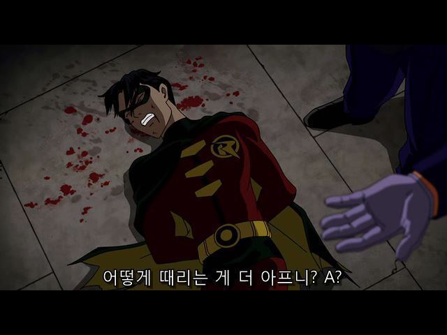 한참을 조커에게 폭행당하다가 웅얼거리는 제이슨