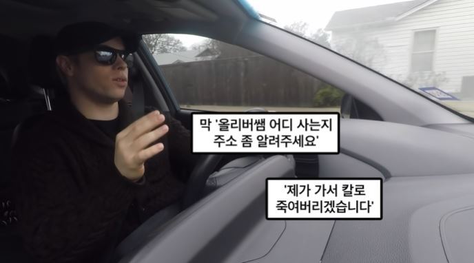 (올리버쌤이 말한 경제적인 상황이나 가족에 대한 얘기는 제외하고 본인이 겪은 위협 관련 내용만 있음)