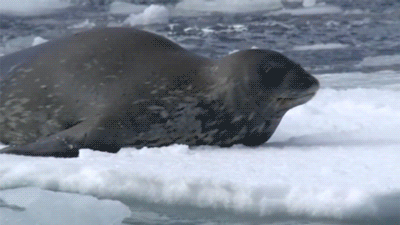 그런데 유빙 밖으로 떨어진 바다표범이 어딘가로 필사적으로 헤어치기 시작함
