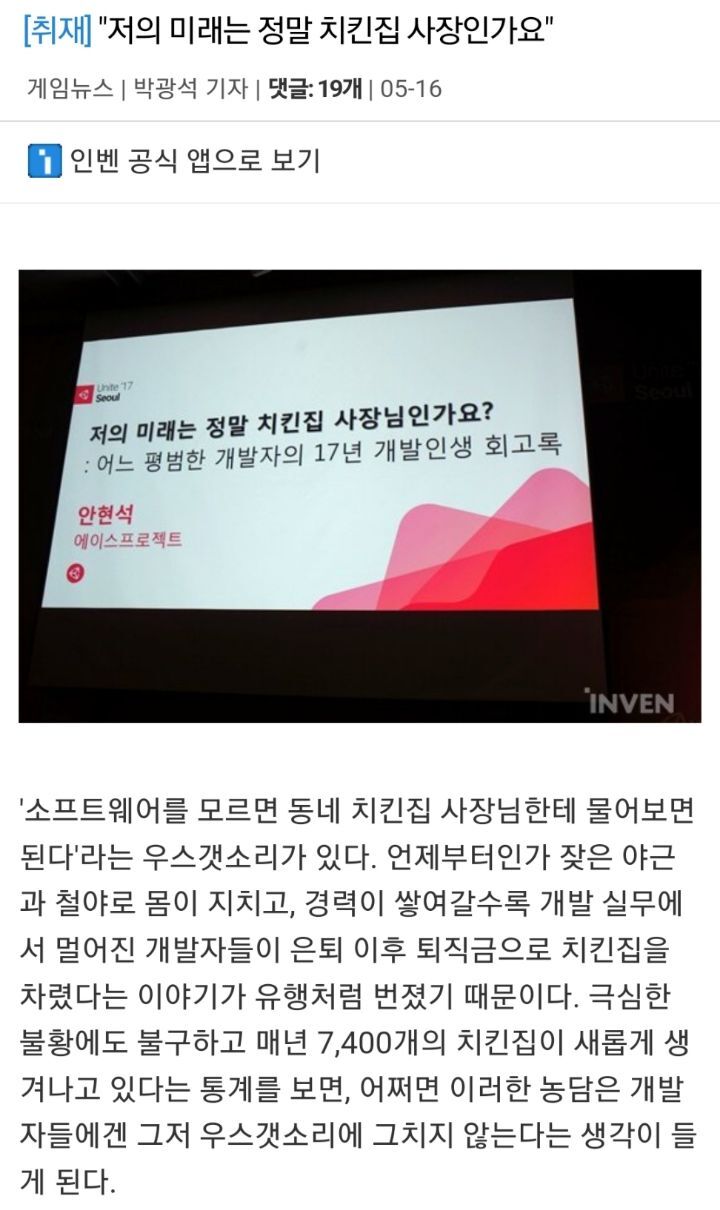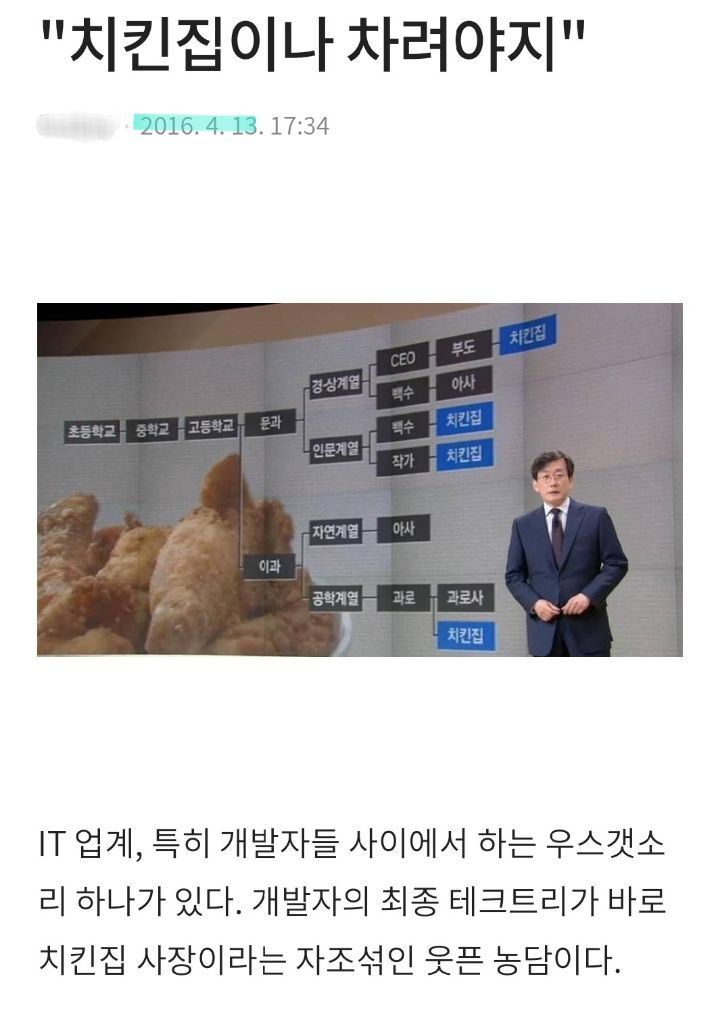 [스크랩] [흥미돋]개발자는 40대에 치킨집 차린다가 국룰이었다가 갑자기 정년없는 기술직 이미지 된게 신기한 달글...
